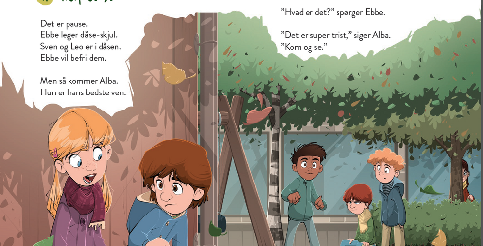 Bogen handler om nogle børn, der er i skole og leger. Alba kommer og siger til Ebbe, at han skal komme med. De finder en død fugleunge og beslutter sig for at begrave den.